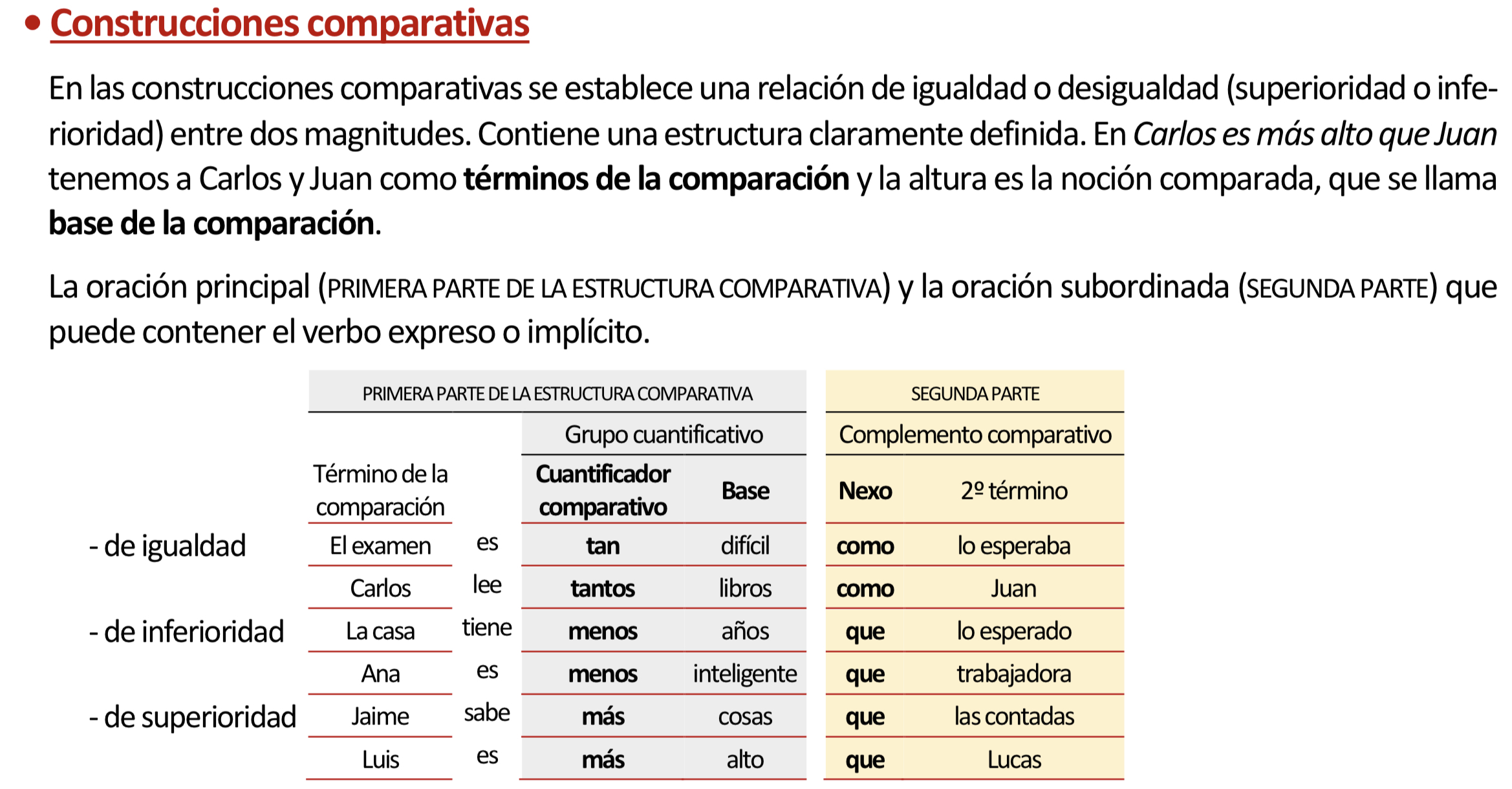 • Comparativas: hay una relación de comparación con lo expresado en algún término de la proposición principal. Esa relación puede ser: